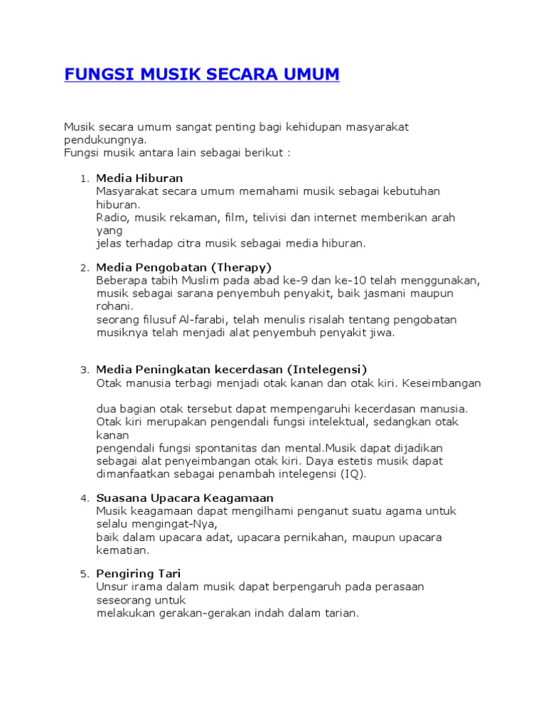 Fungsi Musik Dalam Tari Blog Ananda from img.over-blog-kiwi.com Tentu saja, iringan musik dalam tarian akan selalu berkaitan erat dengan bagian dari kebiasaan yang akan diingat oleh masyarakat tempat tarian. Kedua unsur ini lah yang kemudian membentuk sebuah budaya dari masyarakat. Menambah semarak, semangat dan dinamisnya sebuah tarian 4. Apakah fungsi peranan musik non tradisional ? Fungsi dari musik iringan tari yakni membantu dalam mengeksplorasi gerak penari yang merupakan satu kesatuan dengan tari itu sendiri. Fungsi musik dalam tarian yang pertama adalah sebagai simbol budaya. Alat musik berirama adalah alat musik yang tidak bisa/dapat membunyikan nada tertentu, tetapi mereka hanya dimainkan sebagai pengiring iringan irama dan biasanya dimainkan dalam grup dan kata 'rebana' hampir selalu termasuk dalam nama grup. Bukan hanya memiliki gerakan yang cukup unik namun musik yang digunakan untuk mengiringi tarian memang terbilang cukup unik karena akan di padu padakan dengan berbagai.